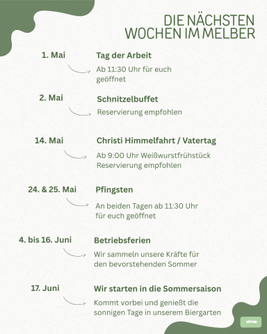 Vom 4. Juni 2026 bis einschließlich 16. Juni 2026 bleibt das Melber geschlossen.
